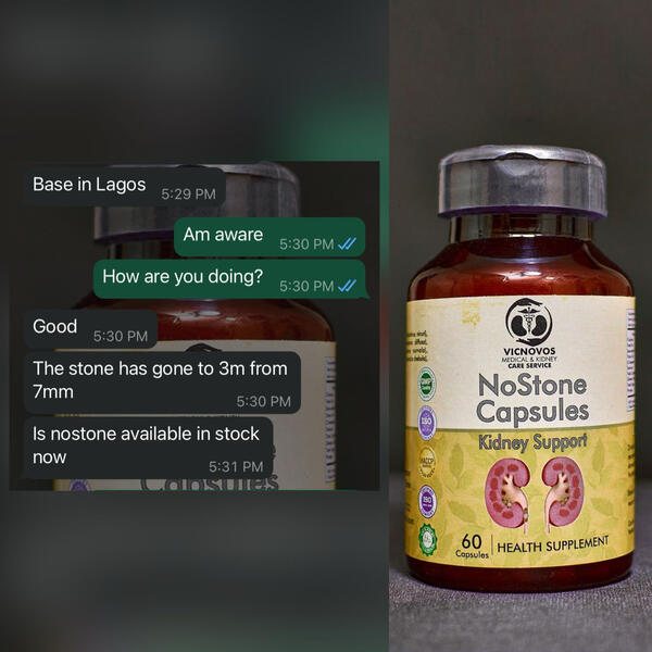 • This escape further Leads to more damages to the kidneys and the kidneys gradually stops functioningABOUT NOSTONE CAPSULESNostone capsules is a blend of 9 herbs of Indian origin crafted to cleans, protect, and rejuvenate the cells of your kidneys so they can serve you for a life time.ACTUAL PRICE N50,000GET NOW FOR JUST N30,000 + FREE BOOK + FREE DELIVERYVALID ONLY FOR 48 HOURSHERE ARE TESTIMONIES FROM THOSE WHO HAVE USED NOSTONE CAPSULESTESTIMONIES OF COME AND SEE