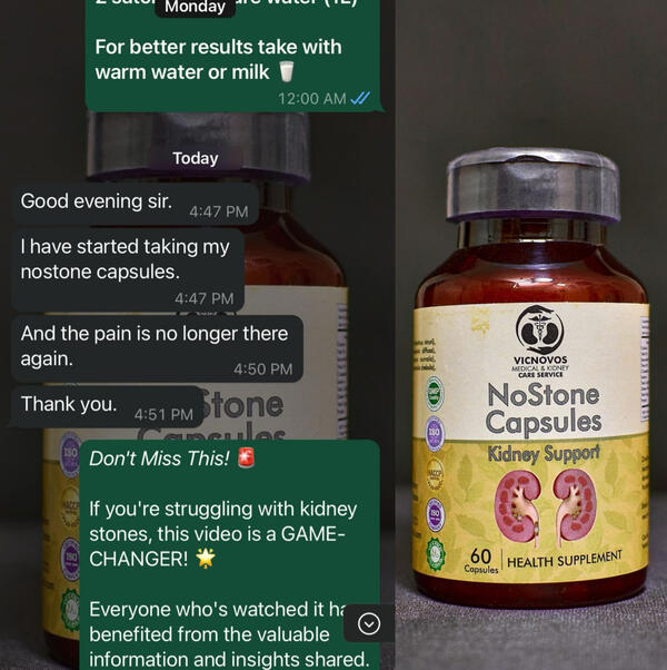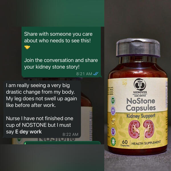 Free Membership: Join our exclusive Telegram community of over 1000 participants for ongoing support and guidanceOrder Now and Start Living Stone-Free!Don't miss out on this incredible opportunity to take control of your kidney health.Order NOSTONE today and start enjoying a life free from kidney stones!📌 Imagine looking for those pains without experiencing them again📌 Imagine the feeling that you will have when you finally pass that kidney stone in your urineNOT TREATING KIDNEY STONES IS NOT A FLEX, IT IS 100% DANGEROUSIf you have kidney stones, you will experience severe lower back painThe pain may radiate to the waist or even around the upper part of the abdomenYou may also notice frequency in urination, painful urination and difficulty in passing urine.If you neglect this symptoms without treatment or treat it poorly, here is what will happen 👇• The stone will keep getting bigger and as it gets bigger the more the pain get worse